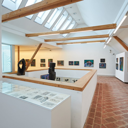 Circa 90 Werke (35 Ölbilder, 10 Holzschnitte, 8 Aquarelle und großformatige Zeichnungen, sowie 40 Skizzen) zeigen den hohen Stellenwert dieses Themas im Schaffen des Künstlers vom Rutarhof.
