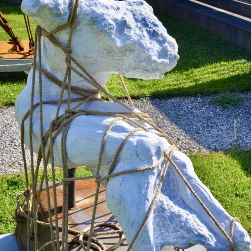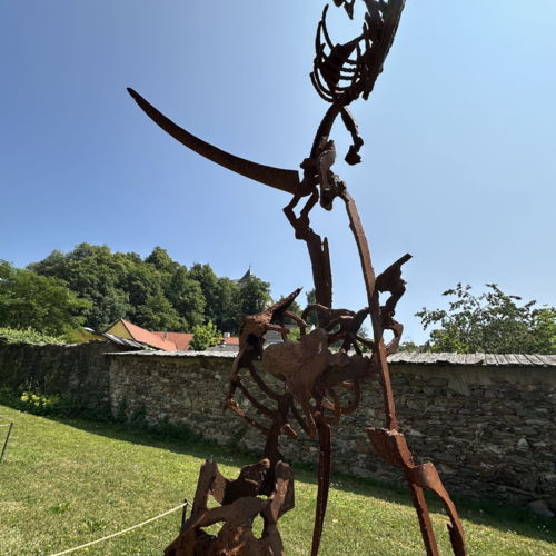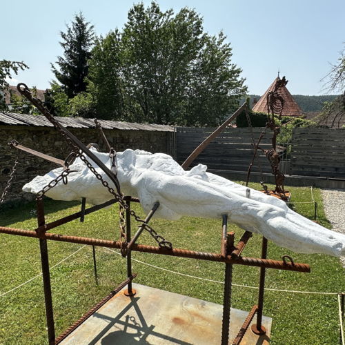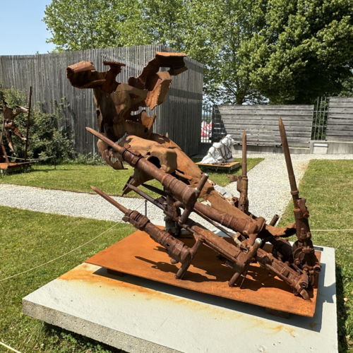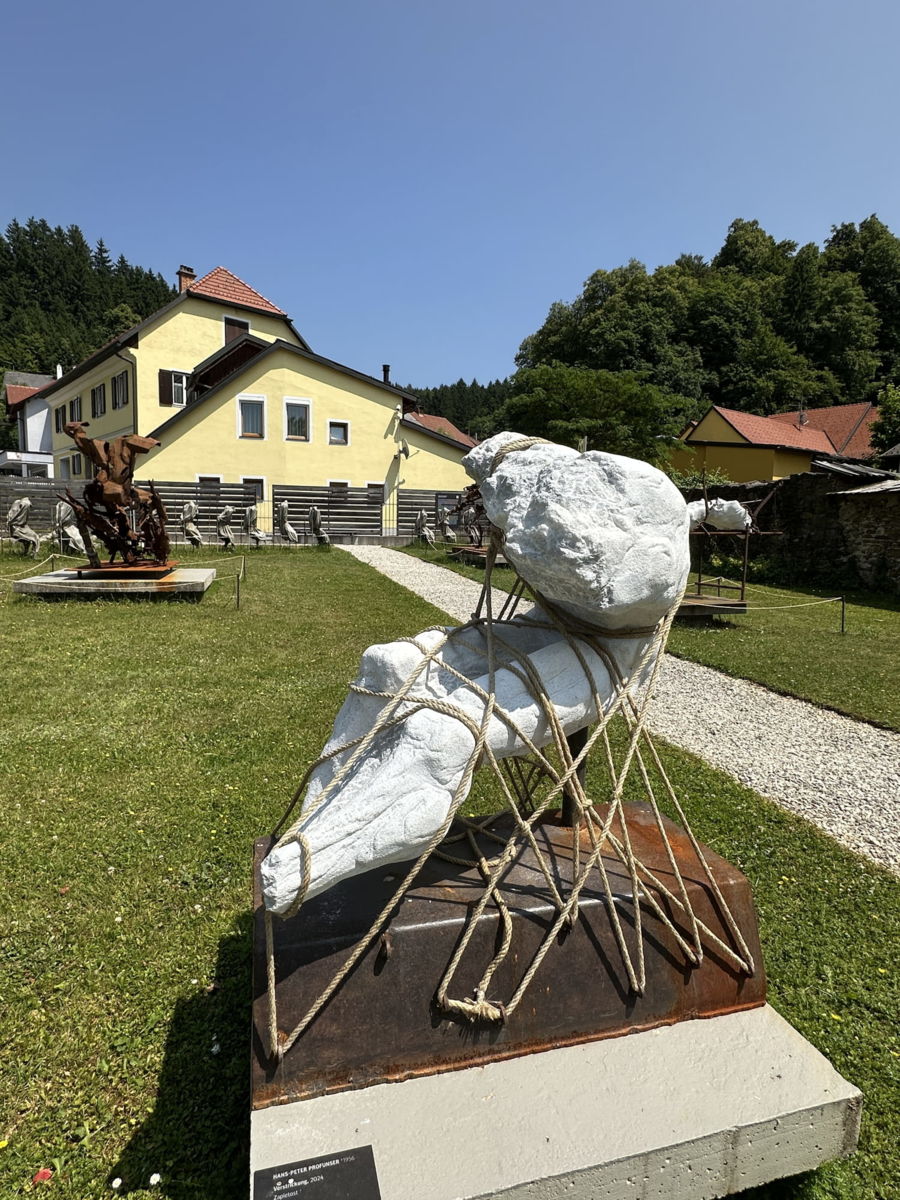Im Skulpturengarten des Museums wird wie bereits im Jahre 2025 die Ausstellung „Gegen den Strom von Hans-Peter Profunser gezeigt.
