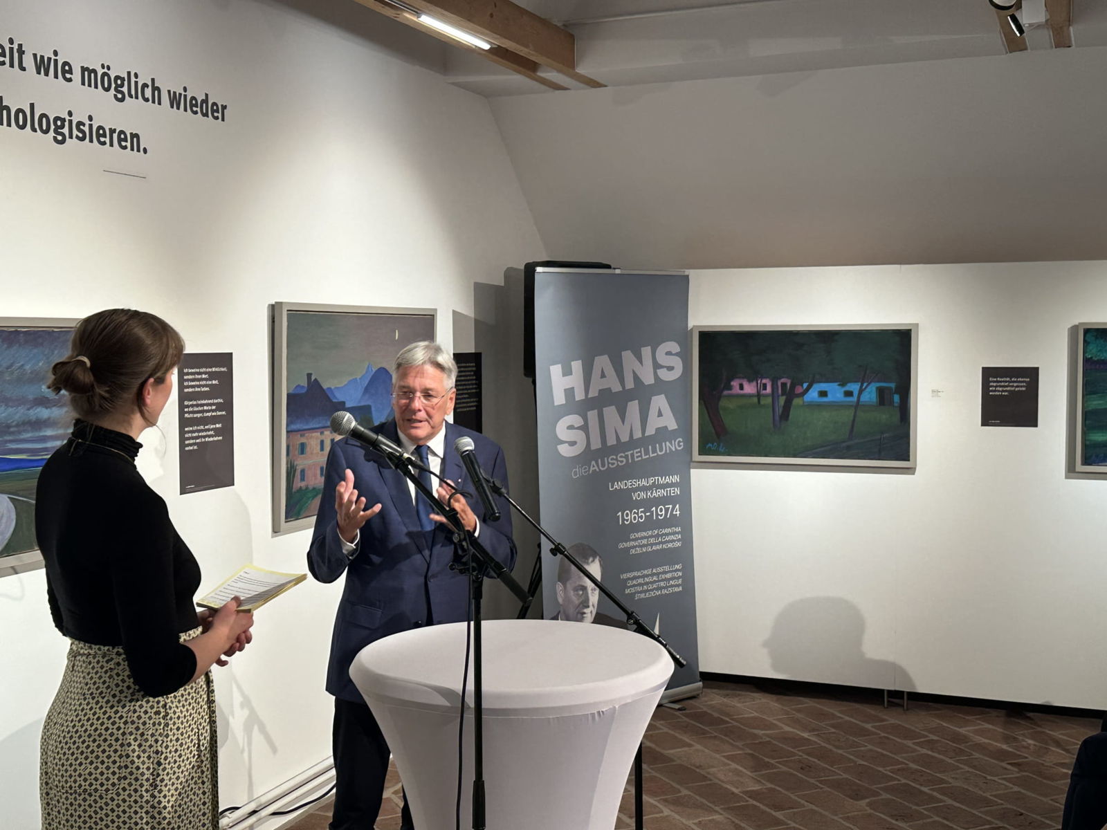 Für den von ihm angestrebten Kulturaustausch zwischen Kärnten und Slowenien nahm das Werk Werner Bergs und dessen Präsentation in Bleiburg/Pliberk eine zentrale Rolle ein. Dies wird im Rahmen dieser Ausstellung eindrucksvoll dokumentiert. Politischer Protest am 29. Oktober 1972 in Völkermarkt. Bis zu seinem Lebensende blieb Hans Sima über den Ortstafelkonflikt und seine Abwahl als SPÖ Landesparteiobmann verbittert.