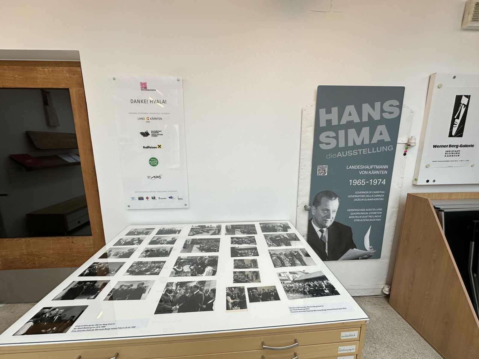 Občasna razstava »Politično življenje Hansa Sime« je zasnovana kot potujoča razstava in bo gostovala tudi v muzeju Wernerja Berga Bleiburg/Pliberk. V razstavi so predstavljeni izbrani fotografski utrinki, ki rekonstruirajo življenje in delo nekdanejga deželnega glavarja avstrijske Koroške Hansa Sime (1918-2006). Hans Sima je želel, da avstrijska Koroška prevzame aktivno vlogo na stičišču treh držav –Avstrije, Italije in nekdanje Jugoslavije. Za kulturno izmenjavo med Koroško in Slovenijo, hkateri je stremel, je imelo delo Wernerja Berga in njegova predstavitev v Pliberku osrednjo vlogo. To je na impresiven način prikazano v okviru te razstave. Politični protest 29. Oktobra 1972 v Velikovcu. Hansa Simo je zaradi spora glede krajevnih tabel in odstavitve s polžaja deželnega vodje stranke SPÖ zagrenjenost spremljala do konca življenja.
